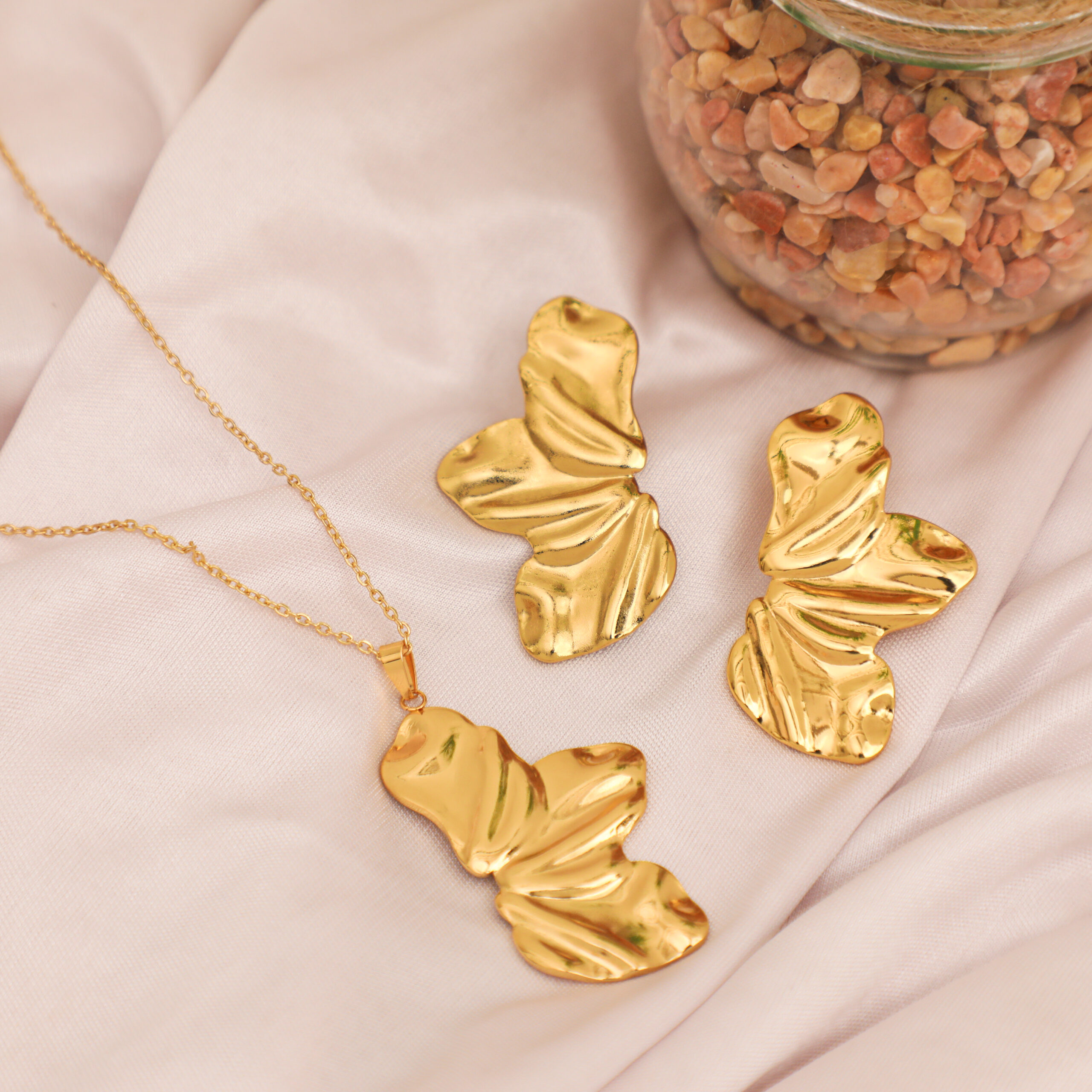 Be the first to review “Gold plated half flower women’s necklace earrings”